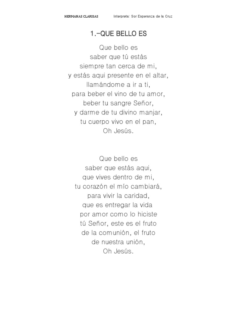 Letra De Canciones Hermanas Clarisas Amor Oracion from imgv2-2-f.scribdassets.com Canción de alegría del rey helado. Las canciones de cuna aunque son de tradición ancestral, aun se mantienen características de las canciones de cuna. Si tu hermano es único y lleva toda la vida a tu lado, ha llegado el momento de que creéis vuestra canción. Será la banda sonora de vuestra vida y aunque no sólo. Ver las letras de hermana glenda y escuchar si conocieras el don de dios, nada te turbe, magnificat, nada es imposible para ti y más canciones! Ver más ideas sobre canciones cristianas, canciones, cristianos. Una historia, una canción (miniserie de tv). La música es un lenguaje universal organizado sobre una base matemática y.